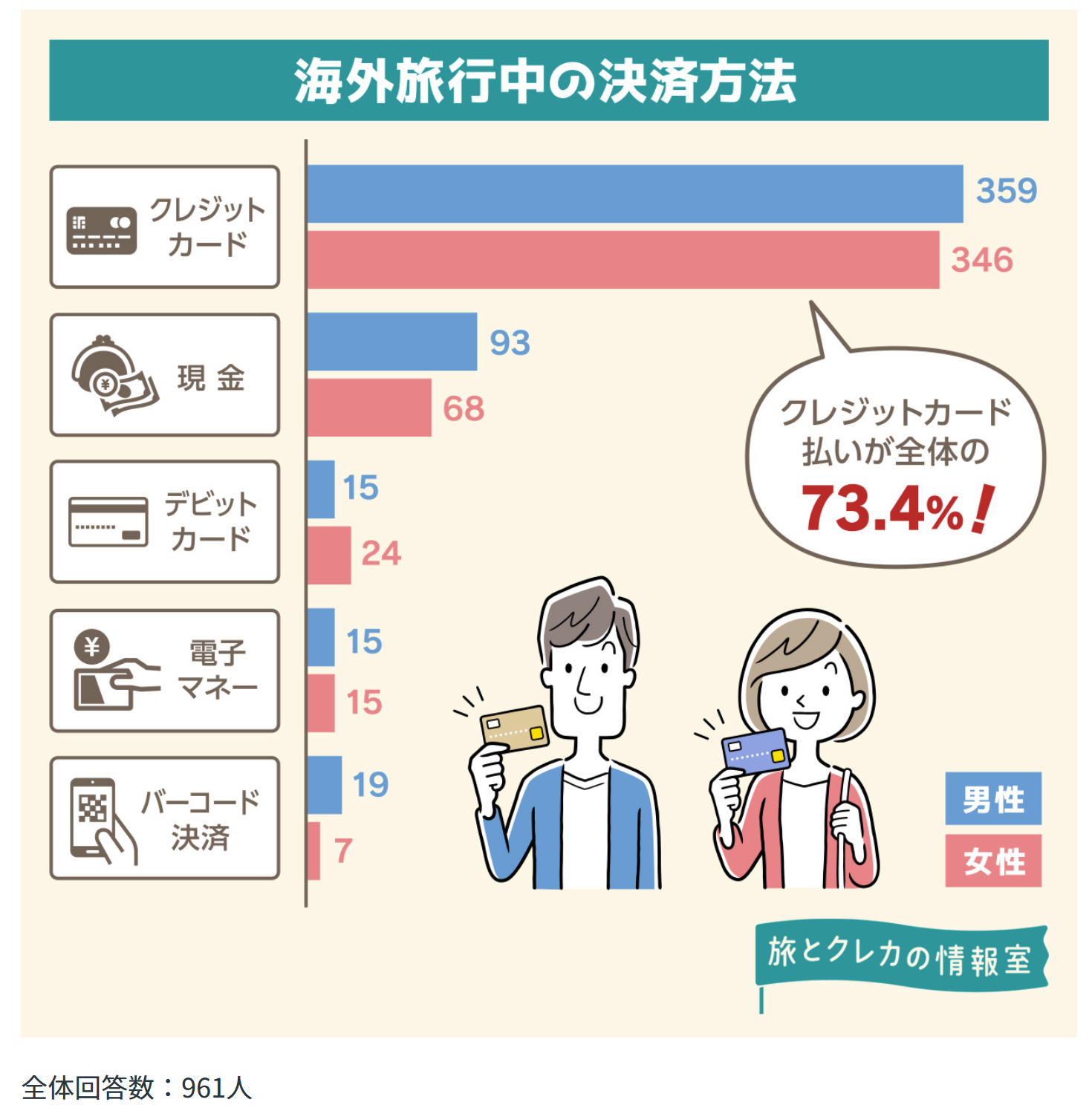 しかも、海外旅行中のクレジットカードの利用率は「73%」で、4人に3人が決済をカードで行っています。