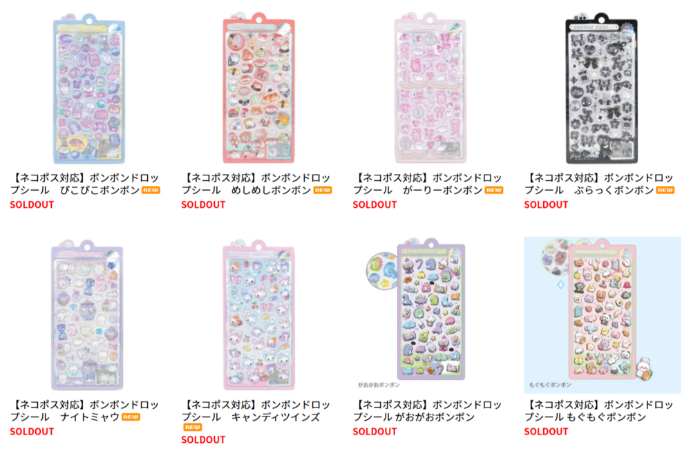特に人気の高いボンボンドロップシールは転売目的で大量に仕入れられるケースが多く、在庫管理がずさんになることもあります。