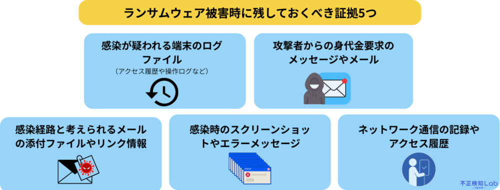ランサムウェアである証拠がなければ、後の調査や対応が困難になり、被害の拡大や責任の所在が曖昧になる恐れがあります。