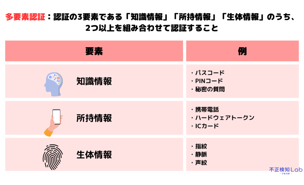 多要素認証とは、ID・パスワード(知識)に加え、スマホ(所持)や指紋(生体)など、異なる種類の認証要素を2つ以上組み合わせて本人確認を行う手法です。
