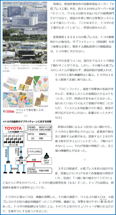 同時期に事例1でも紹介したアスクルへのランサムウェア攻撃もあり、セキュリティ対策の重要性が再認識される事例となりました。