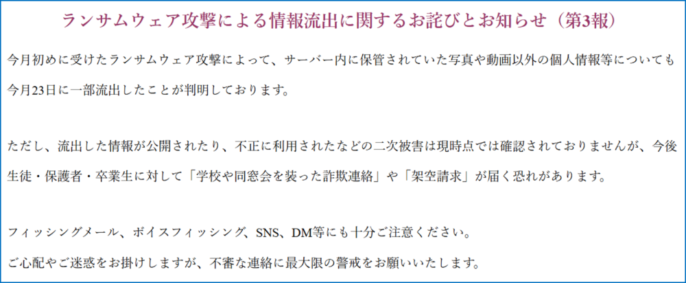 サンリオエンターテインメントは、復旧のため早急に外部の専門機関に調査を依頼したということで、ランサムウェアへの初動対応としては参考にすべき事例です。