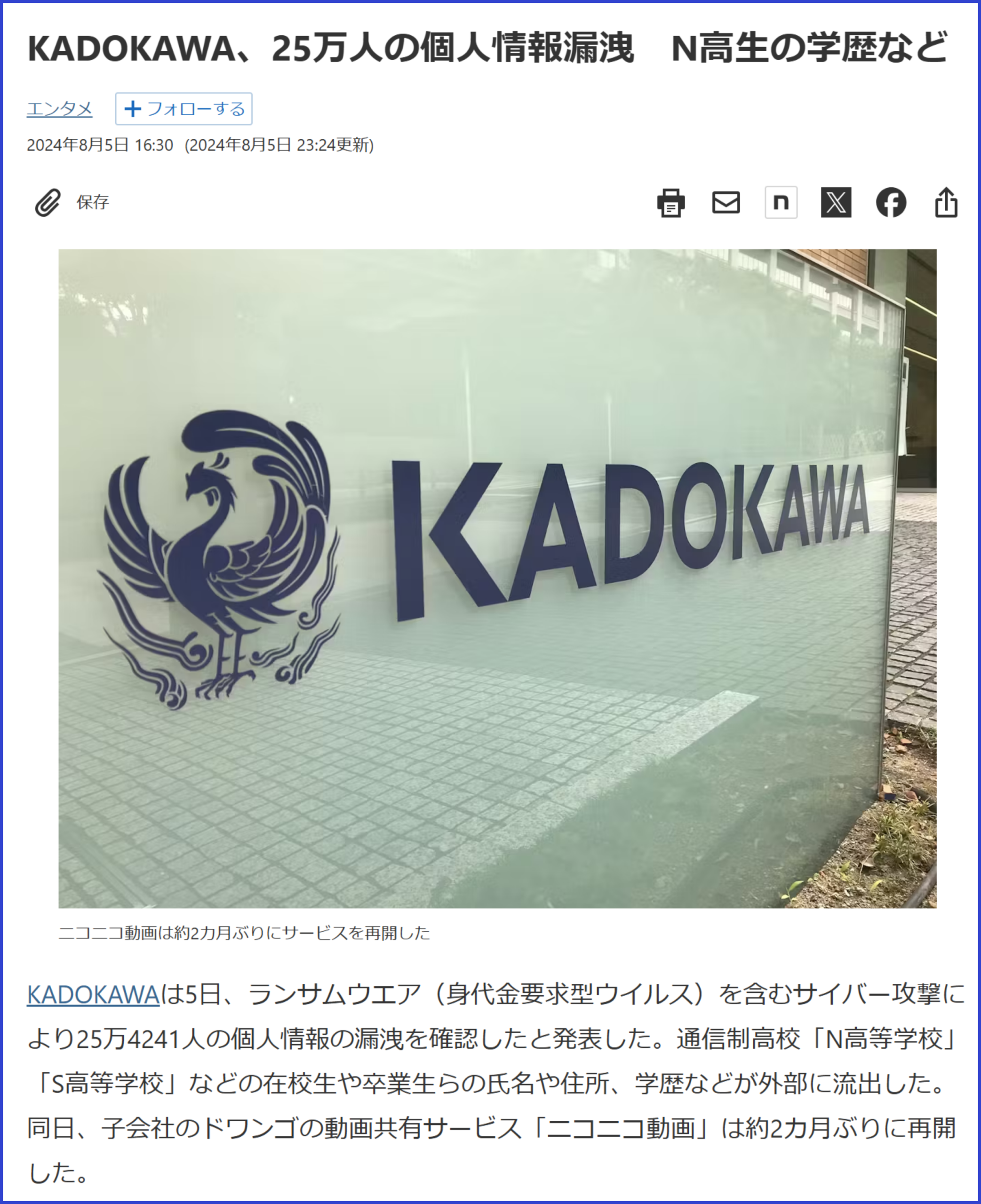 KADOKAWAで大規模なランサムウェア攻撃を受け、サービスの停止や個人情報流出により約36億円の被害が生じる事故が発生しました。