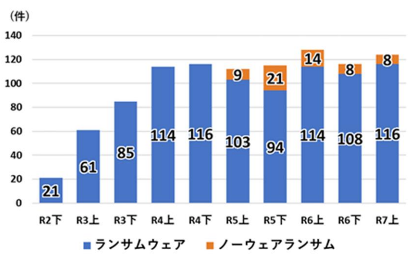 また、近年被害が増加しているランサムウェアの被害報告件数は、令和7年上半期は 116 件であり、極めて深刻な状態であることがわかります。