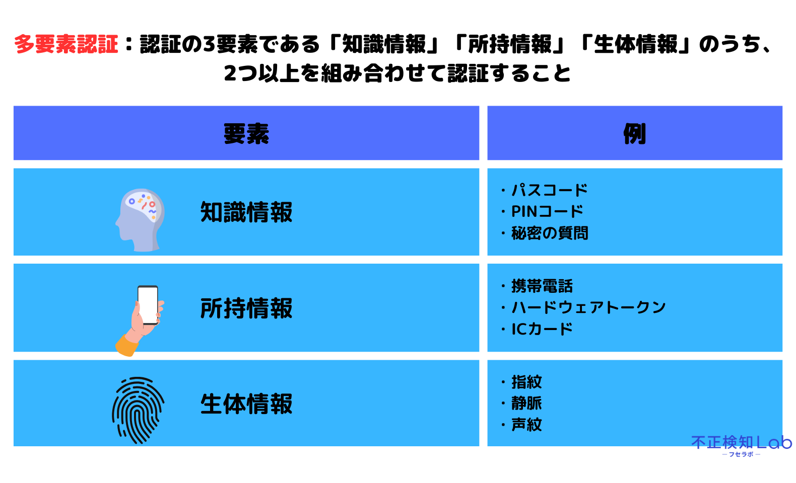 必ず「知識情報」「所持情報」「生体情報」のうち、2つ以上を組み合わせて認証を行いましょう。
