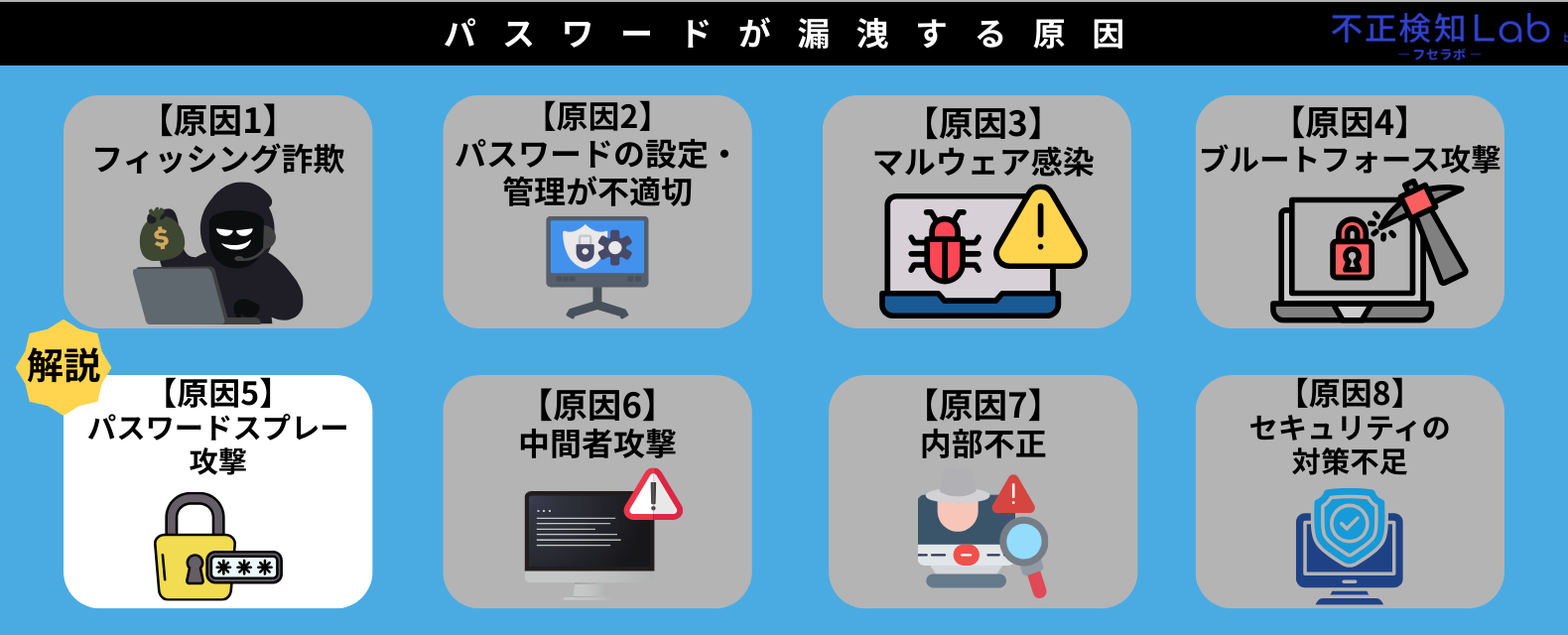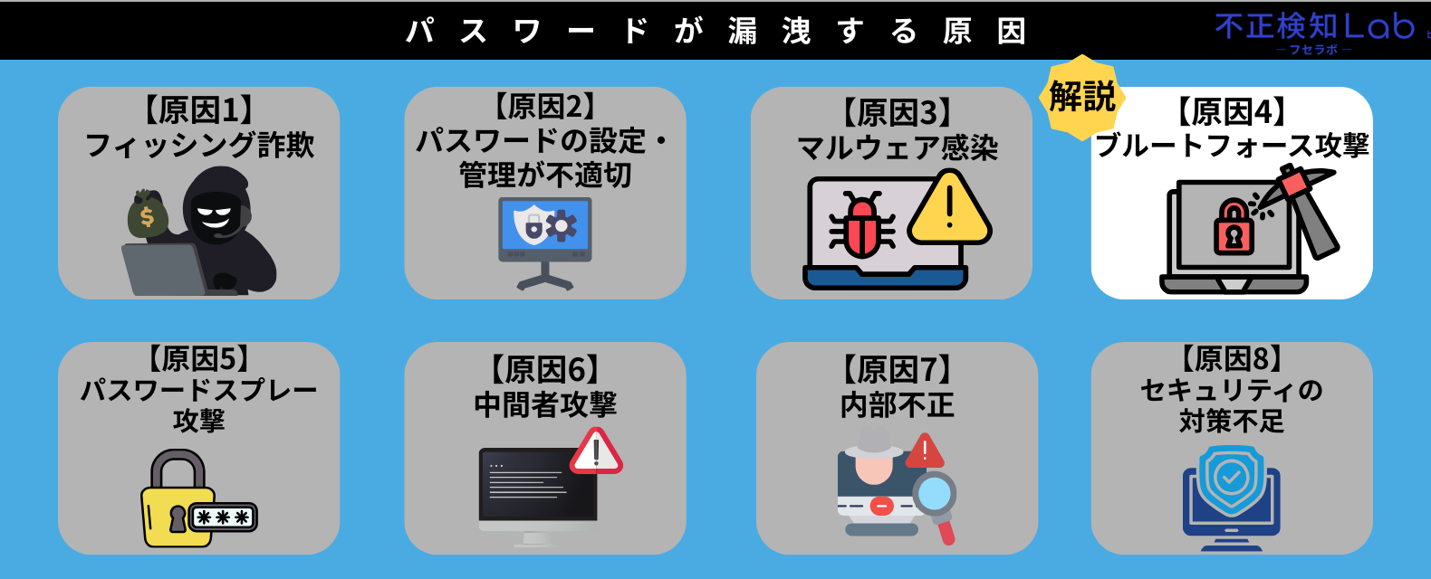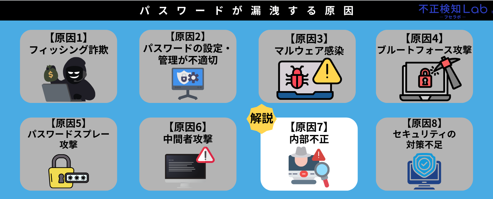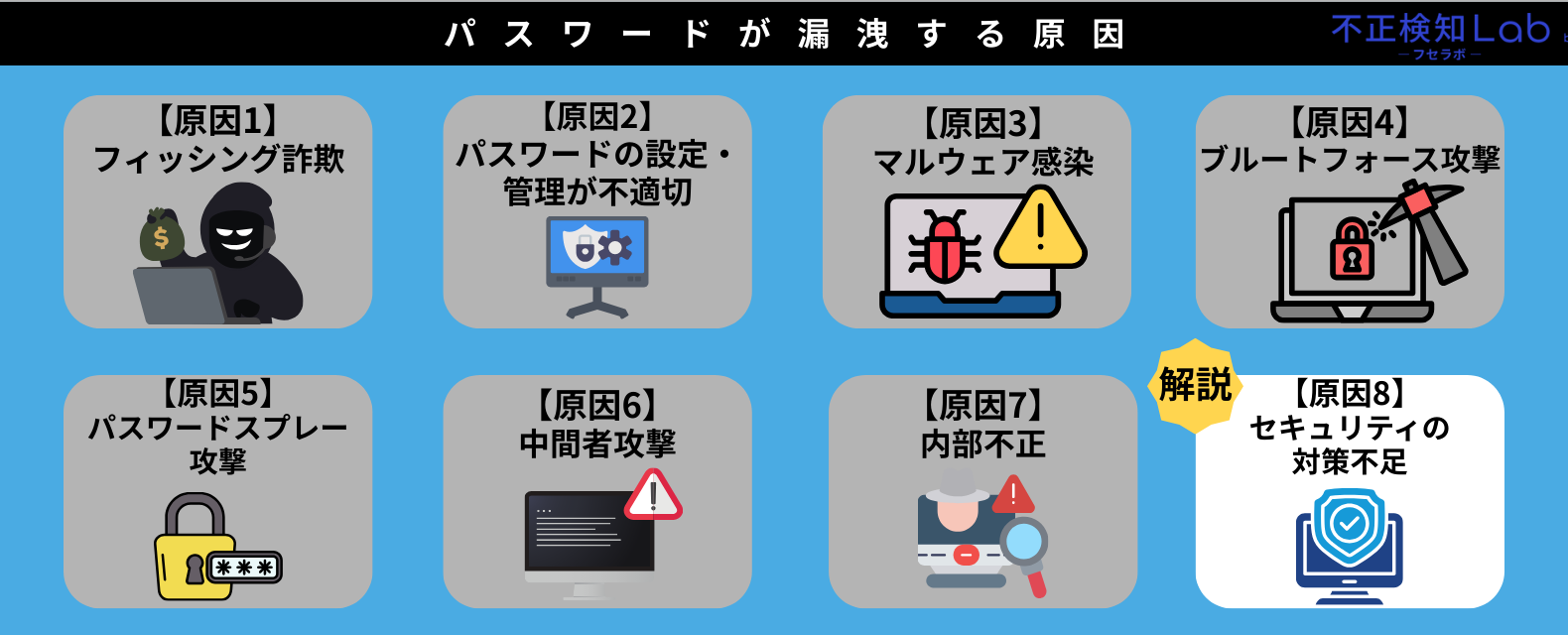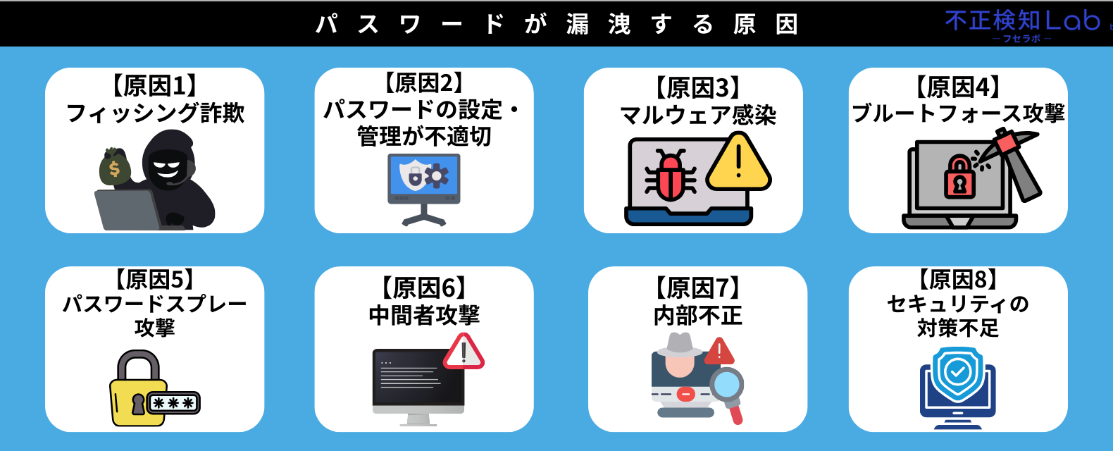 パスワードが漏洩する原因を知ることで、個人や自社に足りていないセキュリティ対策が明確になります。