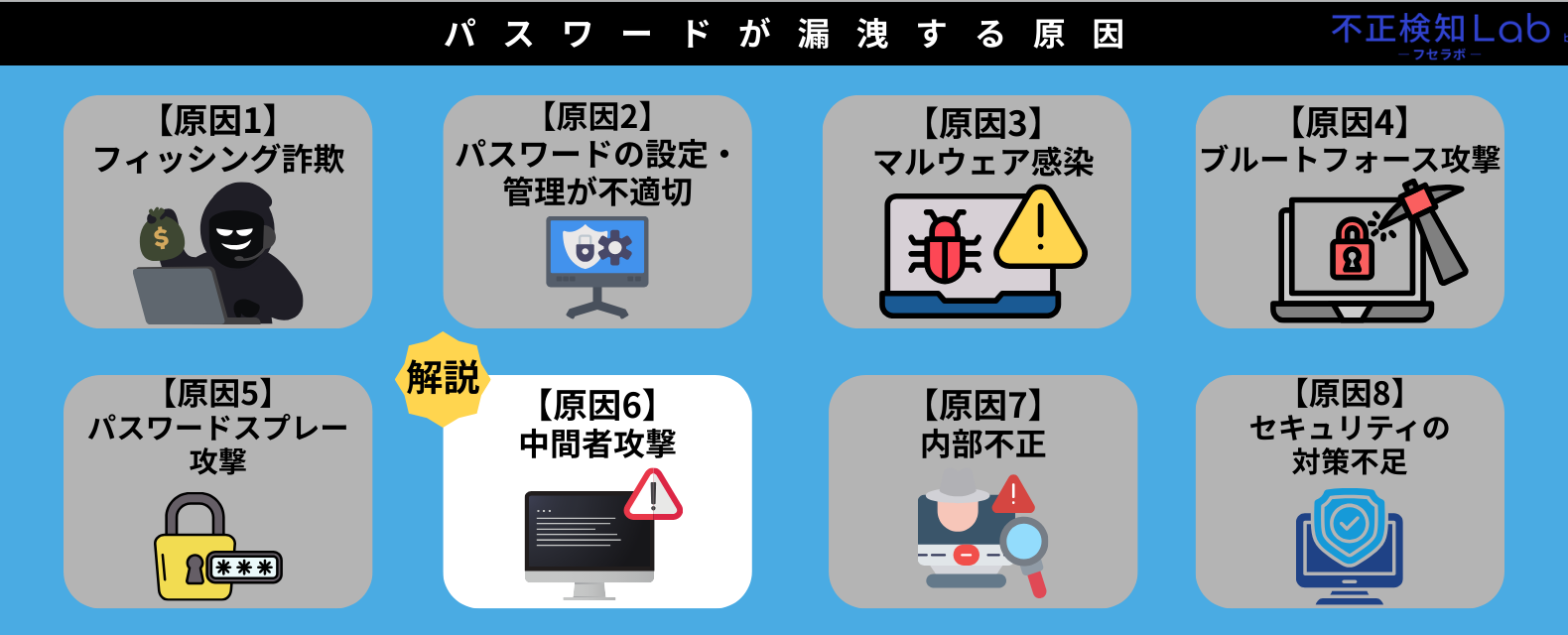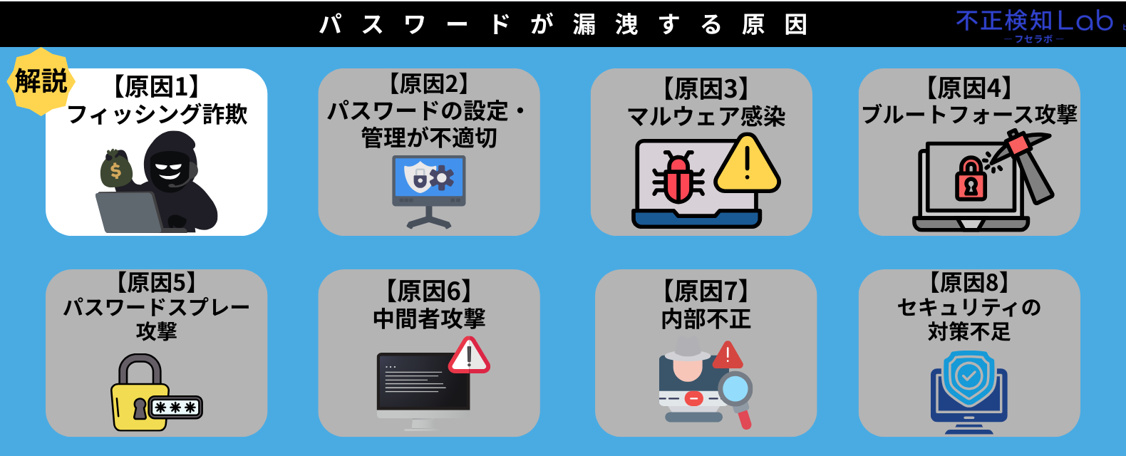 ここまでは、パスワードが漏洩したら起こるリスクについて解説してきましたが、ここからはパスワードが漏洩する原因について解説していきます。