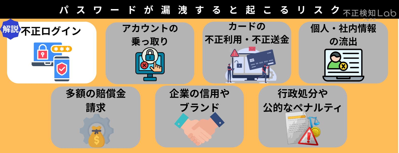 など、パスワードが漏洩して起こるリスクについて気になる方はいませんか?