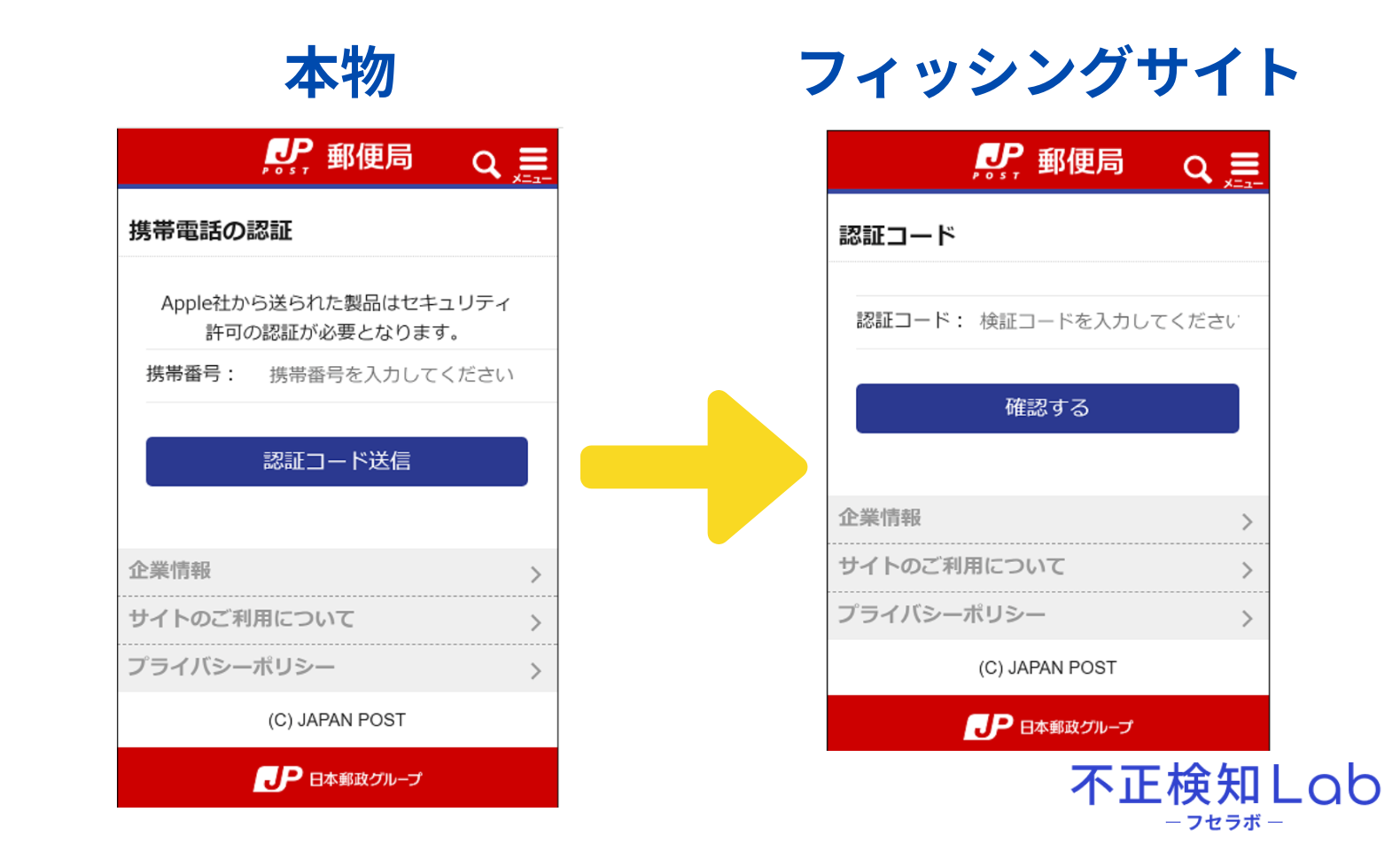 本物のサイトと比べて少ししかデザインやURLに違いがないため、意識しないと間違ってしまいます。
