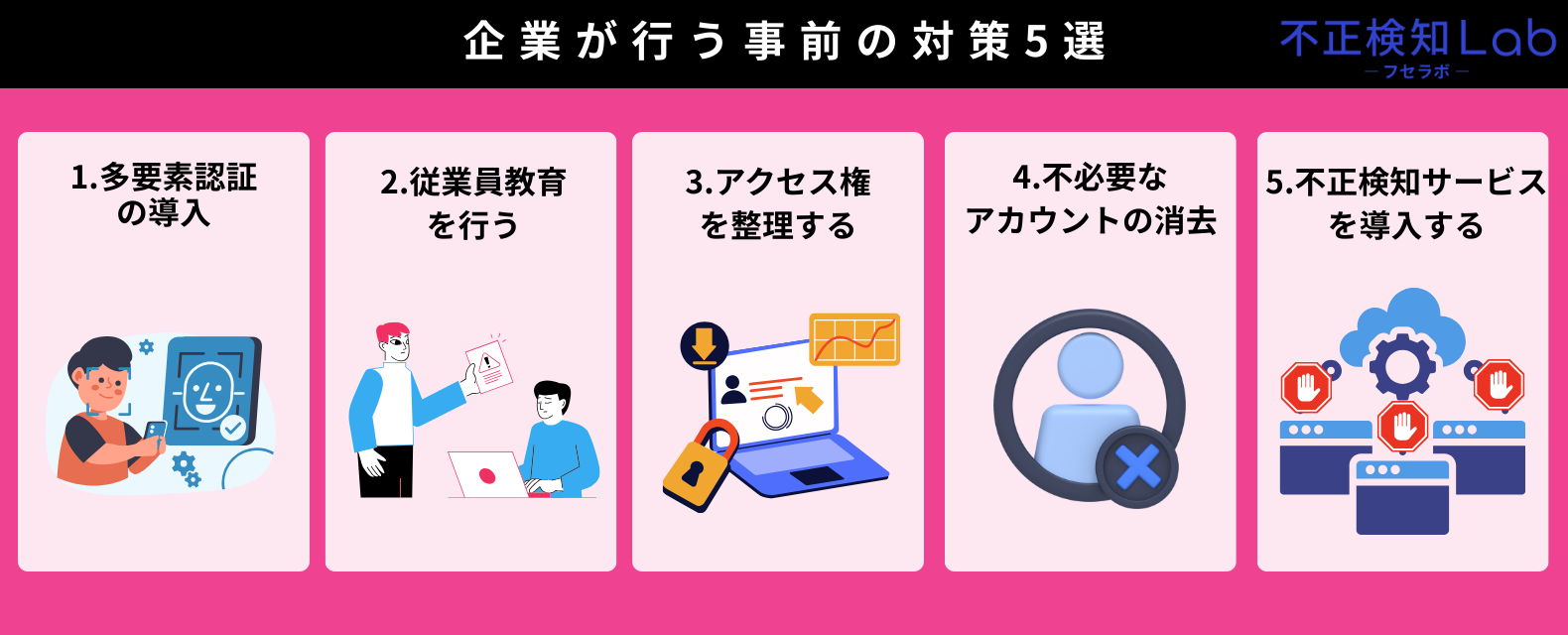 企業がパスワード漏洩を事前に防ぐため、多要素認証の導入や従業員教育を行いましょう。