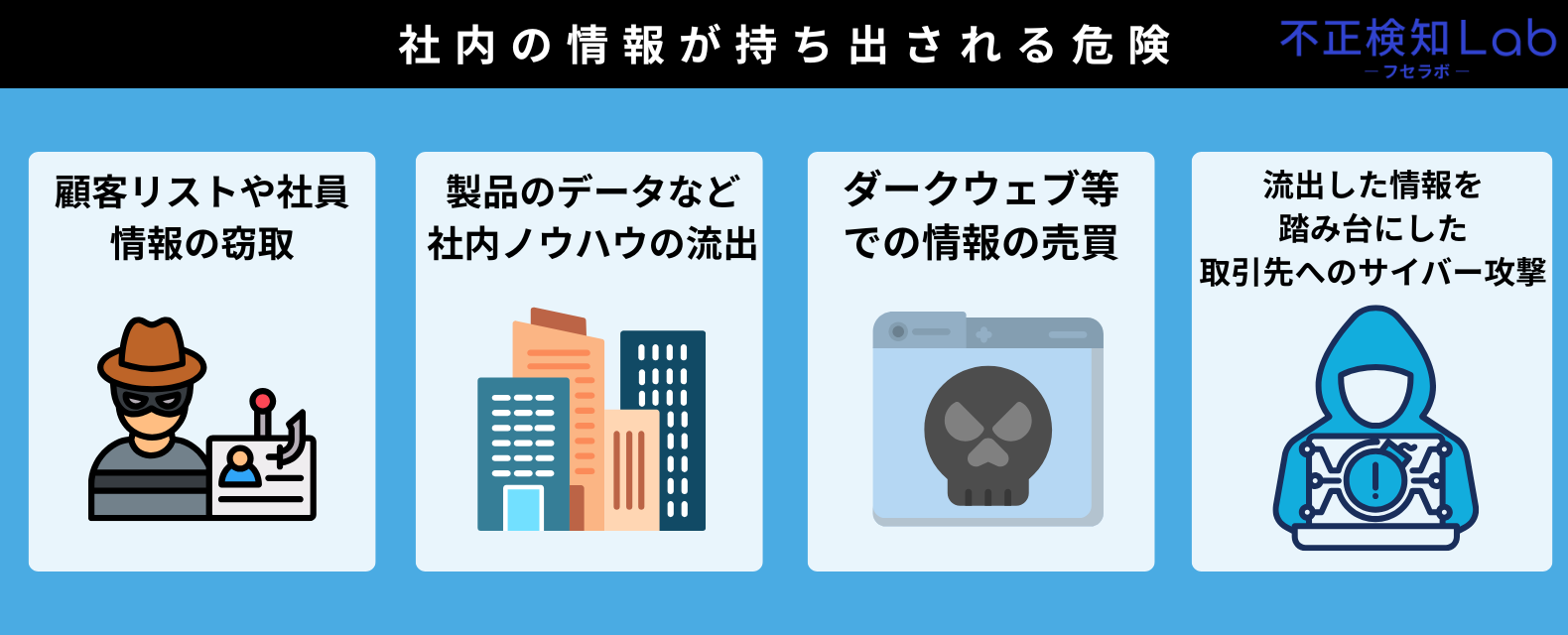 社内の情報を持ち出されると、これから紹介していく「多額の賠償金請求」や「企業の信用やブランド」のほかにも以下のような危険に繋がります。