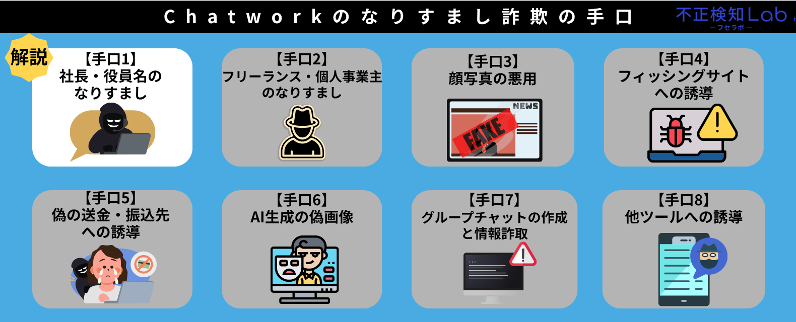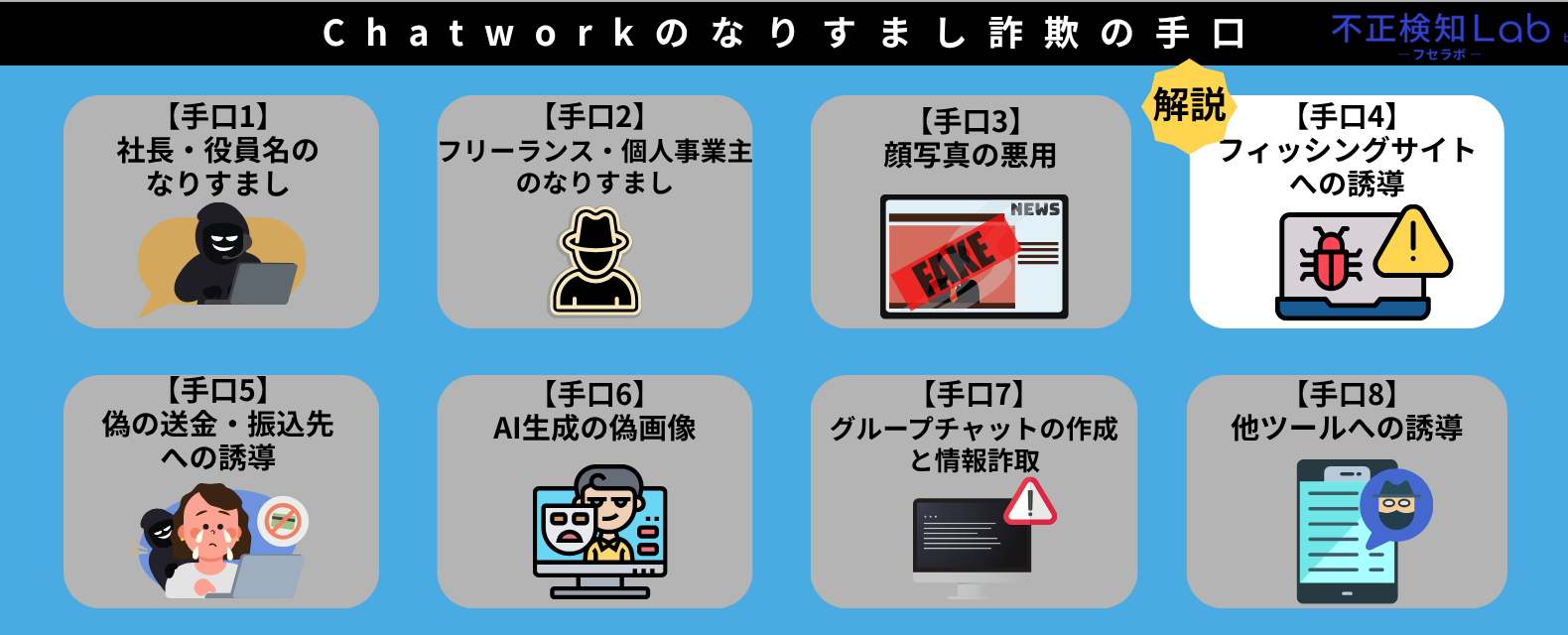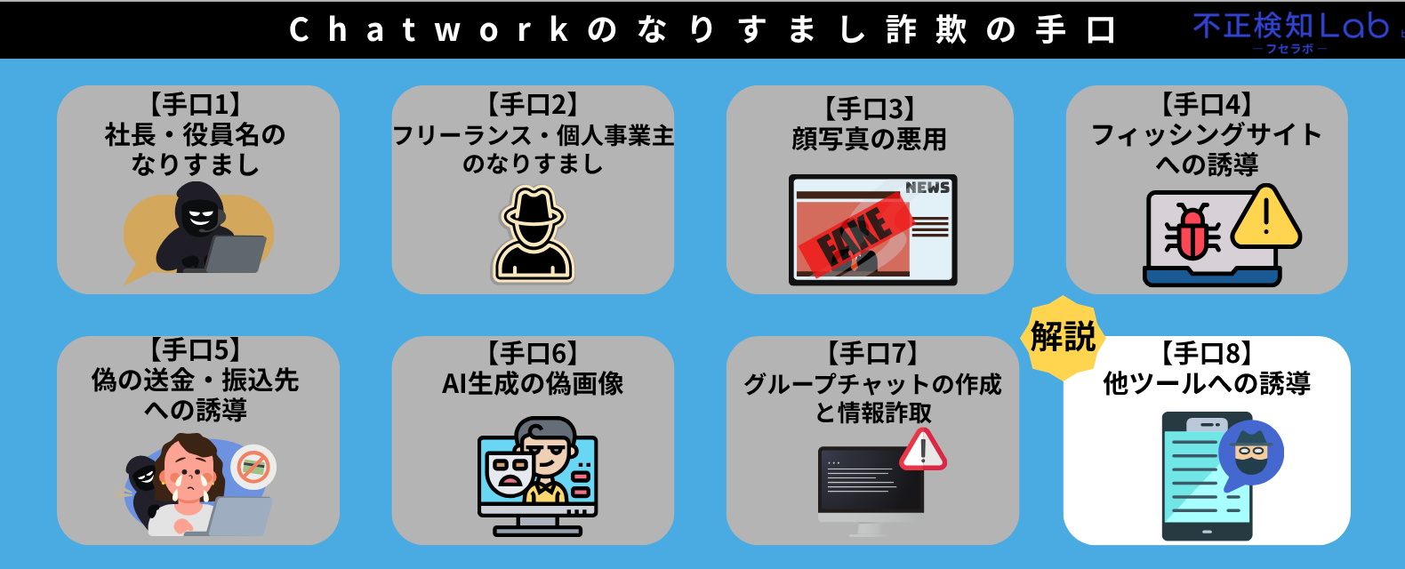 本章では、Chatworkのなりすまし詐欺の手口として以下の内容を解説していきます。