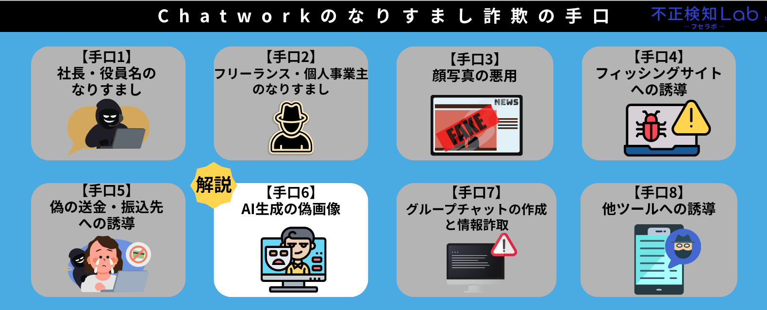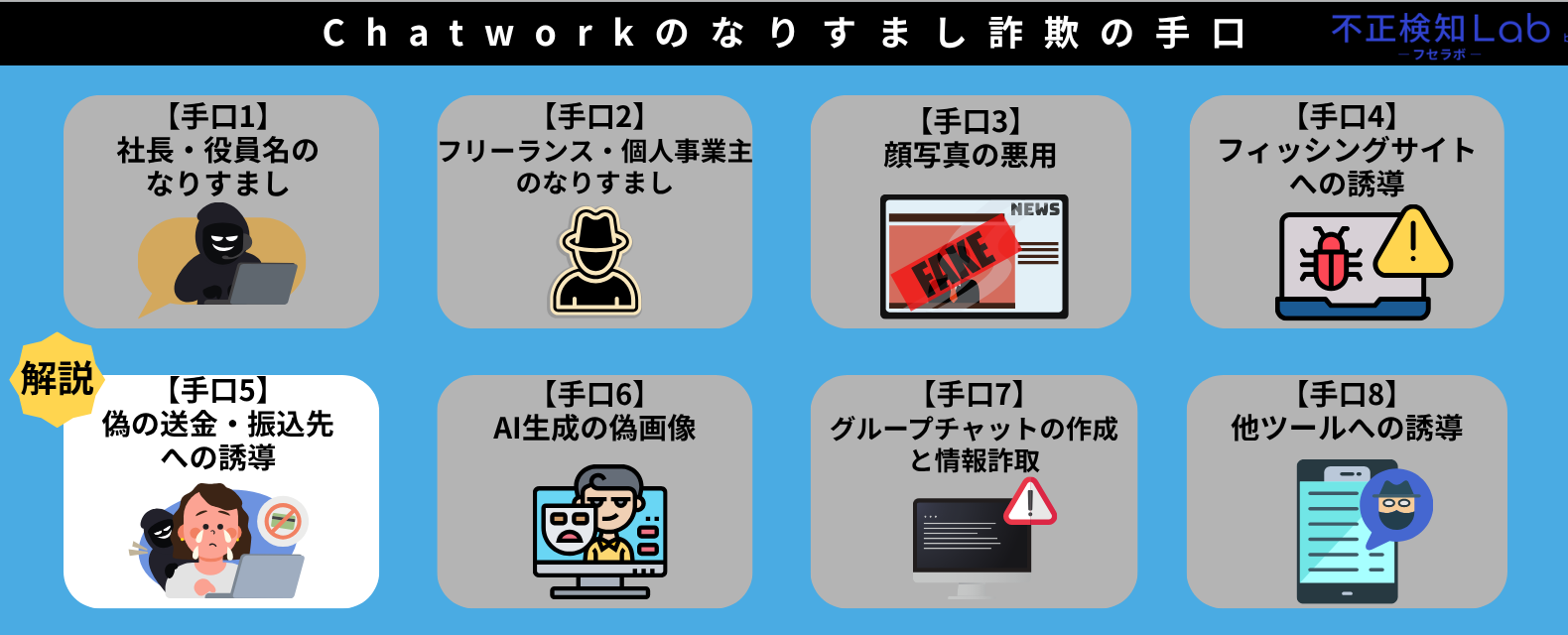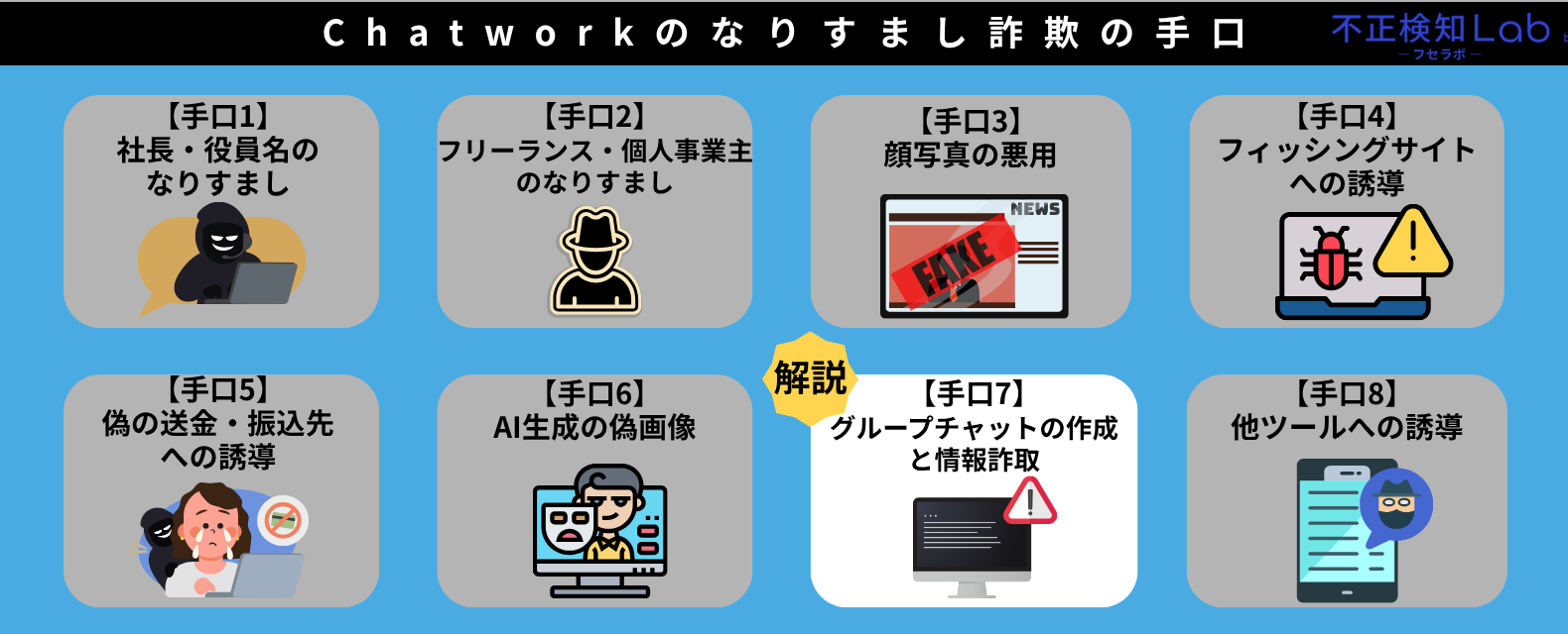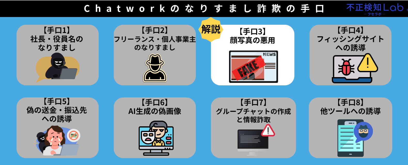 本章では、Chatworkのなりすまし詐欺の手口として以下の内容を解説していきます。