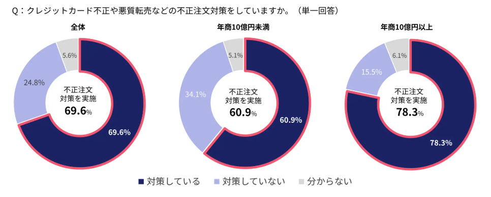 これは、資金や人材などのリソースが限られている中小規模のEC事業者において、不正利用対策への取り組みが十分でない現状を示しています。